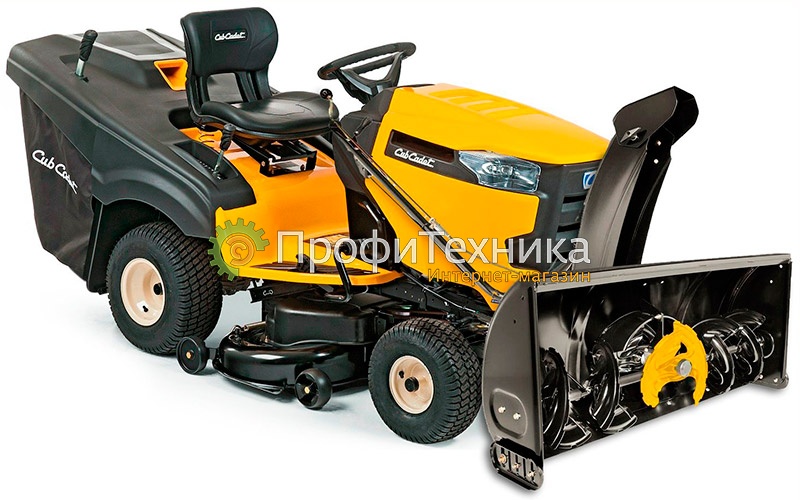 Предназначен для моделей тракторов Cub Cadet с травосборником. Запатентованная трёхступенчатая система выброса снега Cub Cadet является уникальной в области производства снегоуборочной техники. Принцип работы трехступенчатой системы выброса - боковые шнеки измельчают снег и проталкивают его на центральные шнеки, после чего центральные шнеки подают снег на крыльчатку, которая осуществляет выброс снега. При трехступенчатой системе выброса подача снега на крыльчатку осуществляется гораздо быстрее, обеспечивая тем самым более высокую производительность, по сравнению с двухступенчатыми аналогами. Ширина обработки - 107 см. Высота захвата - 53 см. Рекомендуется использование цепей и утяжелителей для дополнительной стабильности.