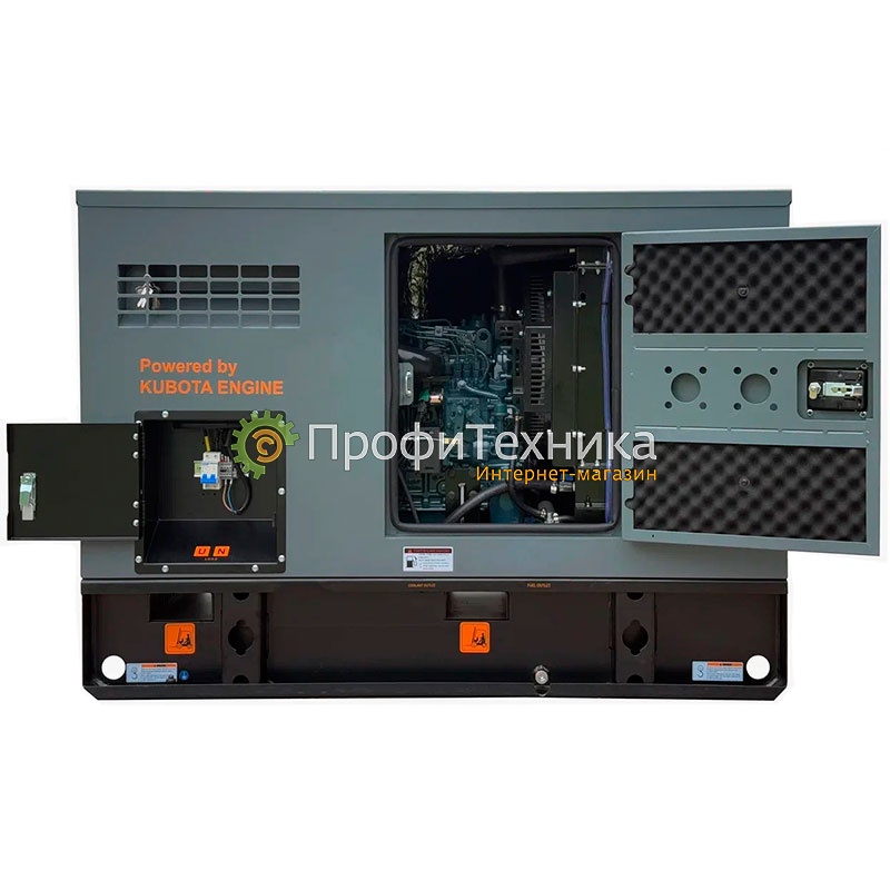 Сердцем установки является двигатель Kubota, рассчитанный на интенсивную эксплуатацию. Рабочий режим с частотой вращения до 3000 об/мин обеспечивает эффективную выработку электроэнергии при разумном расходе топлива. Конструкция генератора продумана таким образом, чтобы гарантировать длительную бесперебойную работу даже в условиях повышенных нагрузок.