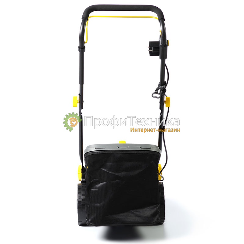 Модель несамоходная, но имеет функцию мульчирования для измельчения травы. Колеса с диаметром 200 мм сзади и 140 мм спереди позволяют легко передвигать устройство по участку. Уровень шума — 96 дБ, уровень вибрации на рукоятке — 3,9 м/с2, что снижает утомляемость оператора.