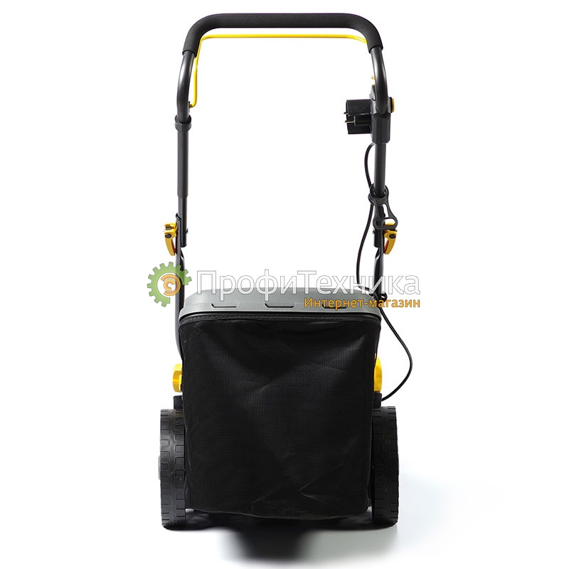 Модель несамоходная, но оборудована функцией мульчирования для удобного измельчения травы. Травосборник объемом 52 литра сочетает в себе пластиковую и тканевую части, обеспечивая удобство при сборе скошенной травы. Вес устройства составляет 12,9 кг. Газонокосилка характеризуется низким уровнем вибрации на рукоятке — 3,9 м/с2, а также комфортным уровнем шума — 86 дБ.