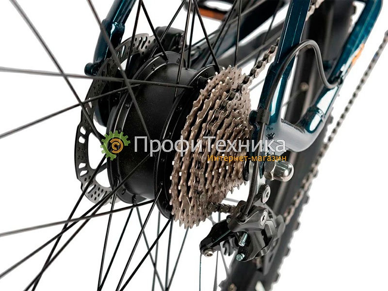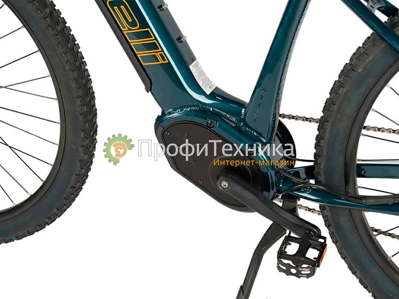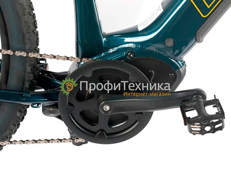 • Мотор мощностью 250 Вт расположен в каретке, что обеспечивает оптимальное распределение веса и естественное ощущение при педалировании. Такая конструкция улучшает управляемость и проходимость, особенно на подъемах и неровных участках.