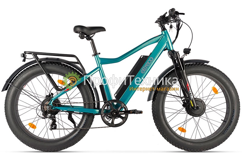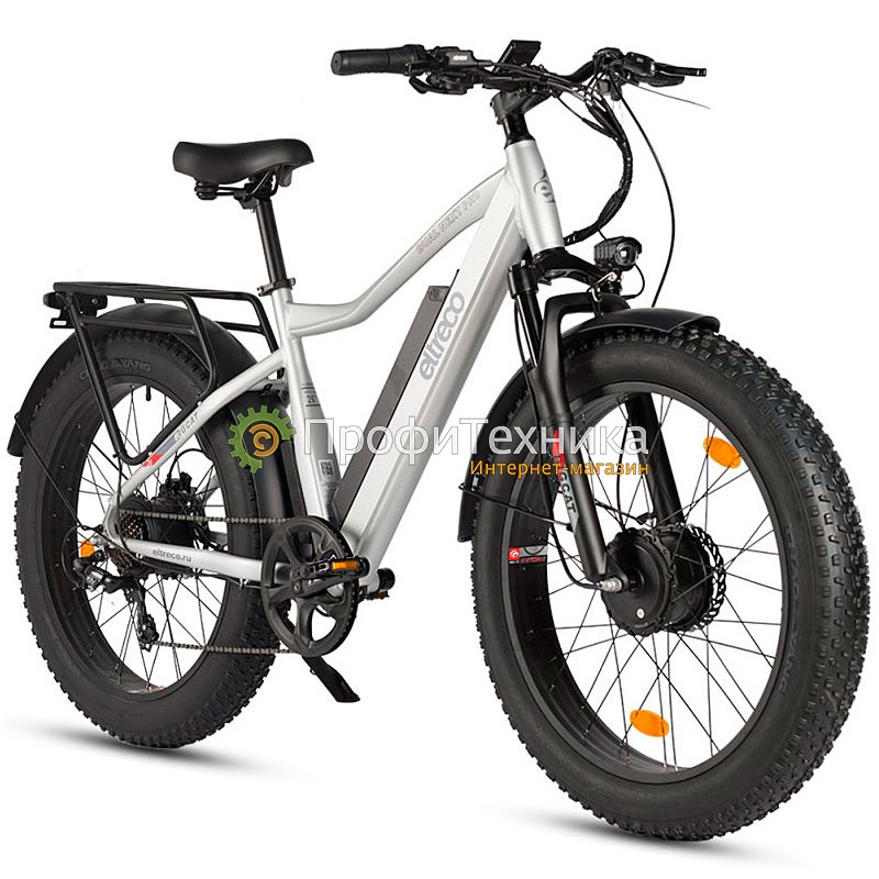 Eltreco BigCat Dual Next PRO – мощный полноприводный фэтбайк, новинка от Eltreco. Для активных и экстремальных поездок по бездорожью в любое время года, долгих велопрогулок, походов, поездок на рыбалку и т.д. Электровелосипед со стильным современным дизайном и богатой комплектацией. Обладатель классических толстых фэтпокрышек 26"x4.0" с выраженным проектором и увеличенным пятном контакта для оптимального сцепления с грунтом и комфорта при езде, мягко преодолевающих самые сложные участки местности, ухабы, грязь, песок, снег. Долговечность и износостойкость гарантируют качественная сборка и оптимально подобранные комплектующие.