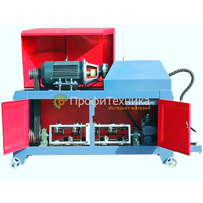 Правильно-отрезной станок GROST SCX 4-12С - это компактный станок, который, тем не менее, имеет все те же функции, что и большие машины. В этой модели вращение правильного блока и гидравлического насоса системы резки обеспечивает один мощный двигатель.