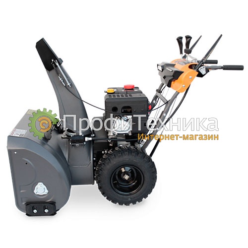 Снегоуборщик снабжен двигателем LONCIN, который рассчитан на работу при низкой температуре. Легко запускается и функционирует на морозе до -30 градусов. Мощность двигателя составляет 11 л.с. Также модель оснащается электростартером, который облегчает запуск от сети 220 В. Опция востребована, когда нужно быстро запустить агрегат без предварительного разогрева двигателя.