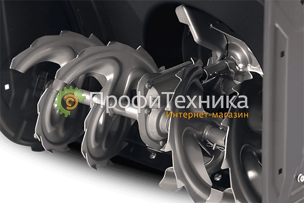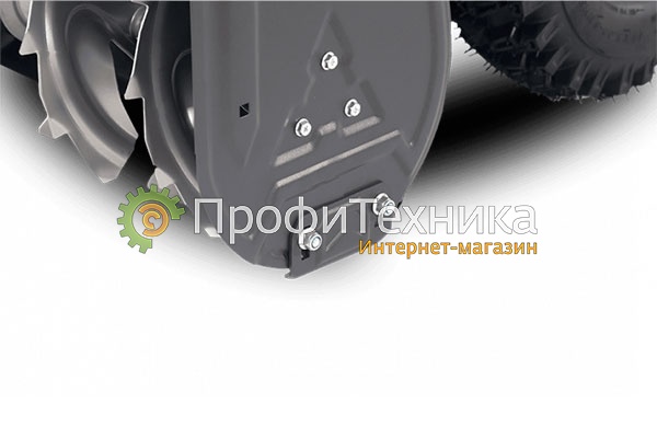 Управление направлением и углом наклона выброса осуществляется снаружи панели оператора — интуитивно и удобно. Устройство также оснащено LED-фарой для работы при низкой освещённости и подогревом рукояток, который позволит комфортно работать даже в мороз. Противоскользящие шины, металлические опорные лыжи и лопатка для очистки шнека — всё продумано до мелочей.