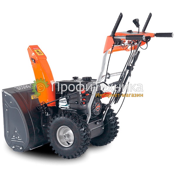Модель оборудована прочным стальным двухступенчатым шнеком и долговечным металлическим желобом, что обеспечивает высокую износостойкость. Самоходная колёсная база с фрикционной трансмиссией и передачами (6 вперед/2 назад) делает управление максимально комфортным и плавным, даже на неровной поверхности. Электростартер от сети 220 В ускоряет запуск в холод, а ручной вариант добавляет надёжности.