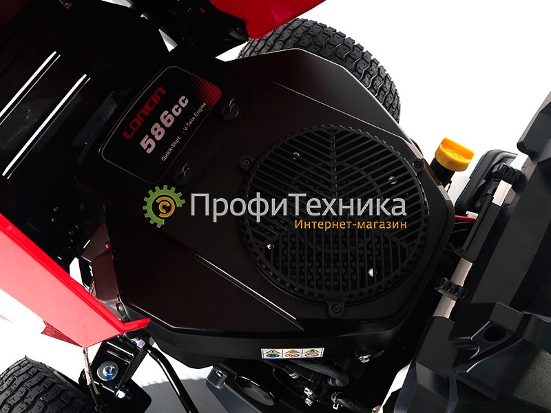 • Мощный бензиновый двигатель Loncin - 18 лошадиных сил и два цилиндра обеспечивают высокую производительность и стабильную работу даже на сложных участках.
