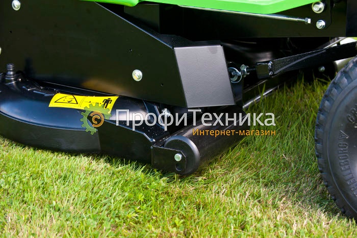 Корпус режущего агрегата (дека) имеет стенки толщиной 1 см и изготовлен из литого алюминия. Дека не ржавеет, не деформируется и устойчива к высоким нагрузкам, т.е. специально предназначена для профессионального (коммерческого) использования. Режущий агрегат состоит из двух высокопрочных ножей длиной по 52 см каждый. Ножи расположены под прямым углом относительно друг друга и вращаются в противоположных направлениях. Рабочая область одного ножа на 4 см перекрывает рабочую область другого ножа, что гарантирует отсутствие нескошенных участков травы.