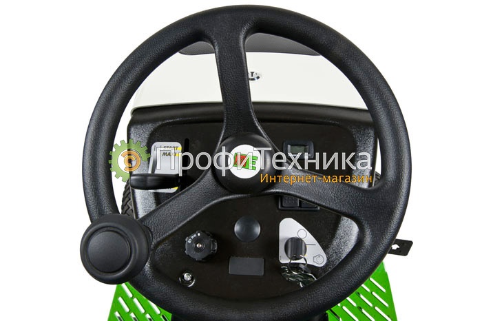 Разгрузка травосборника, управление сцеплением ножей и газа находятся в пределах вытянутой руки оператора. Ручной тормоз и регулятор высоты кошения так же можно использовать, не вставая из удобного и полностью регулируемого водительского кресла. Лёгкое и отзывчивое рулевое управление приспособлено даже к неподготовленному оператору.