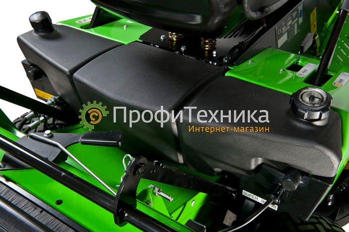 Травосборник ёмкостью 500 литров опустошается, не покидая водительского сиденья, с помощью двух гидроцилиндров. Эргономичный дизайн позволяет оператору на расстоянии вытянутой руки использовать рычаг для разгрузки травосборника.