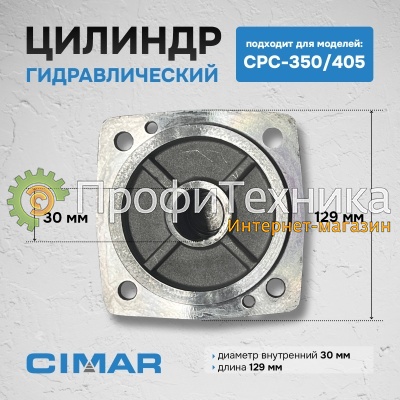 Данный гидроцилиндр предназначен для установки на реверсивные виброплиты CIMAR CPC-350 и CPC-405 с любым типом двигателя. Он одинаково подходит для бензиновых версий с мотором Honda GX390, а также для дизельных модификаций с двигателем Yanmar L100 или его китайским аналогом CHANGCHAI 192. Основные параметры: внутренний диаметр цилиндра — 30 мм, длина (вероятно, ход штока или габаритная длина) — 129 мм. Обратите внимание: эта деталь длиннее, чем гидроцилиндр для младших моделей CPC-160/240 (у которого длина 97 мм), поэтому они не взаимозаменяемы.